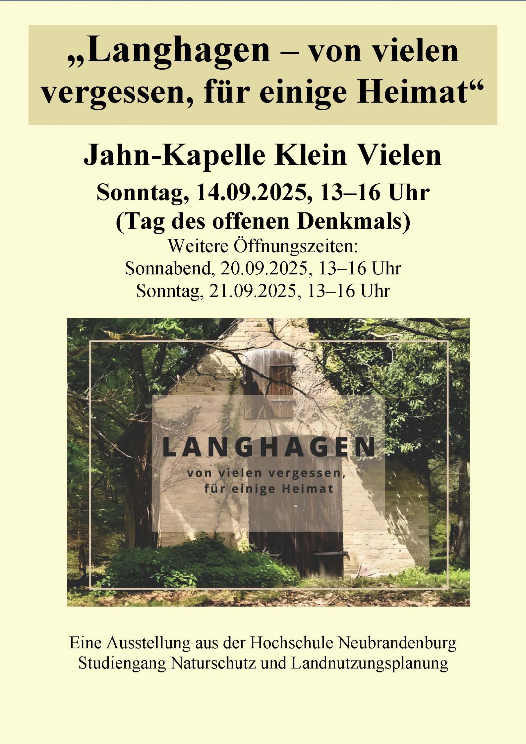 Die Ausstellung wurde nur ein einziges Mal im Oktober 2022 in Langhagen gezeigt. Der Klein Vielen e. V. freut sich, sie in der Jahn-Kapelle präsentieren zu können.